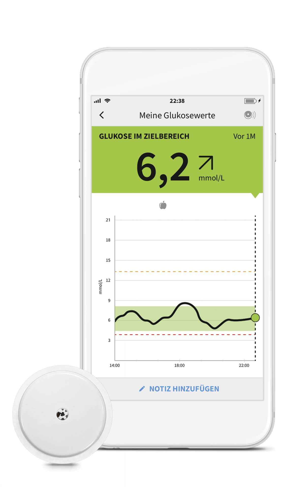 - Minutengenaue Werte bis zu 14 Tagen – ohne Fingerstechen.