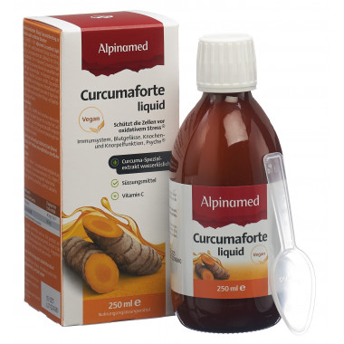 ALPINAMED Curcumaforte flüssig ist ein hochwertiges Nahrungsergänzungsmittel mit einer wohlschmeckenden, flüssigen Curcumazubereitung – ideal zur direkten Einnahme oder zum Verdünnen in Wasser, Tee oder Fruchtsaft. Die Formulierung ist frei von Zucker, Alkohol, Laktose und Gluten. Zudem ist das Produkt vegan.