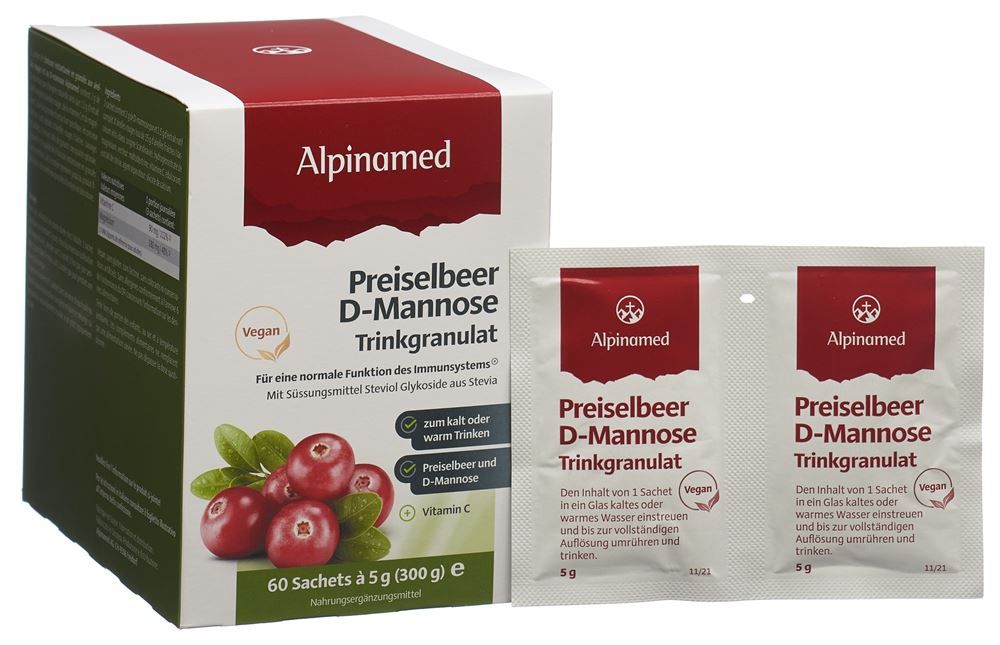 Produktinformationen "ALPINAMED Preiselbeer D-Mannose Trinkgranulat 60 Beutel a 5g"
