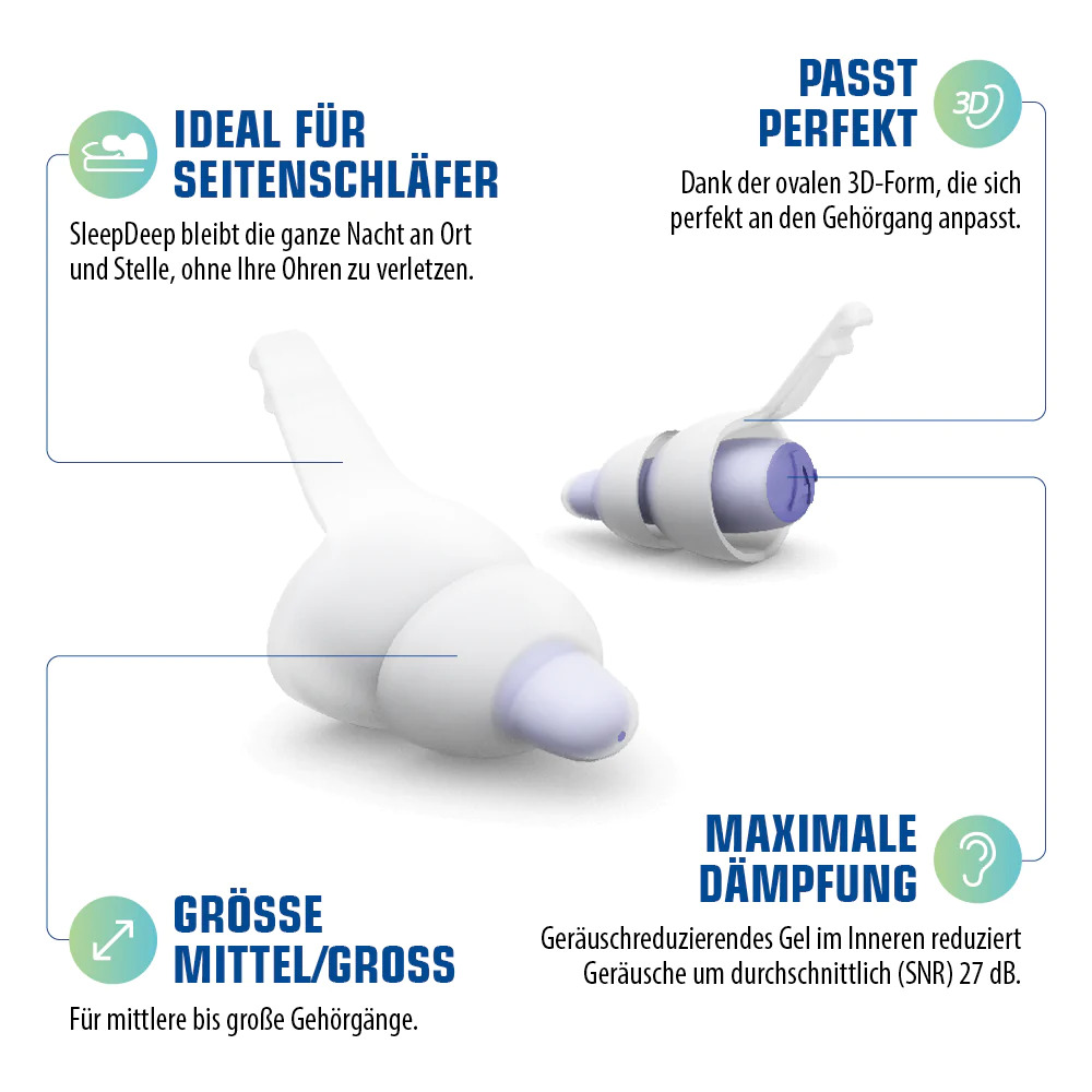 SleepDeep sind höchst komfortable Ohrstöpsel, die speziell zum Schlafen entwickelt wurden.