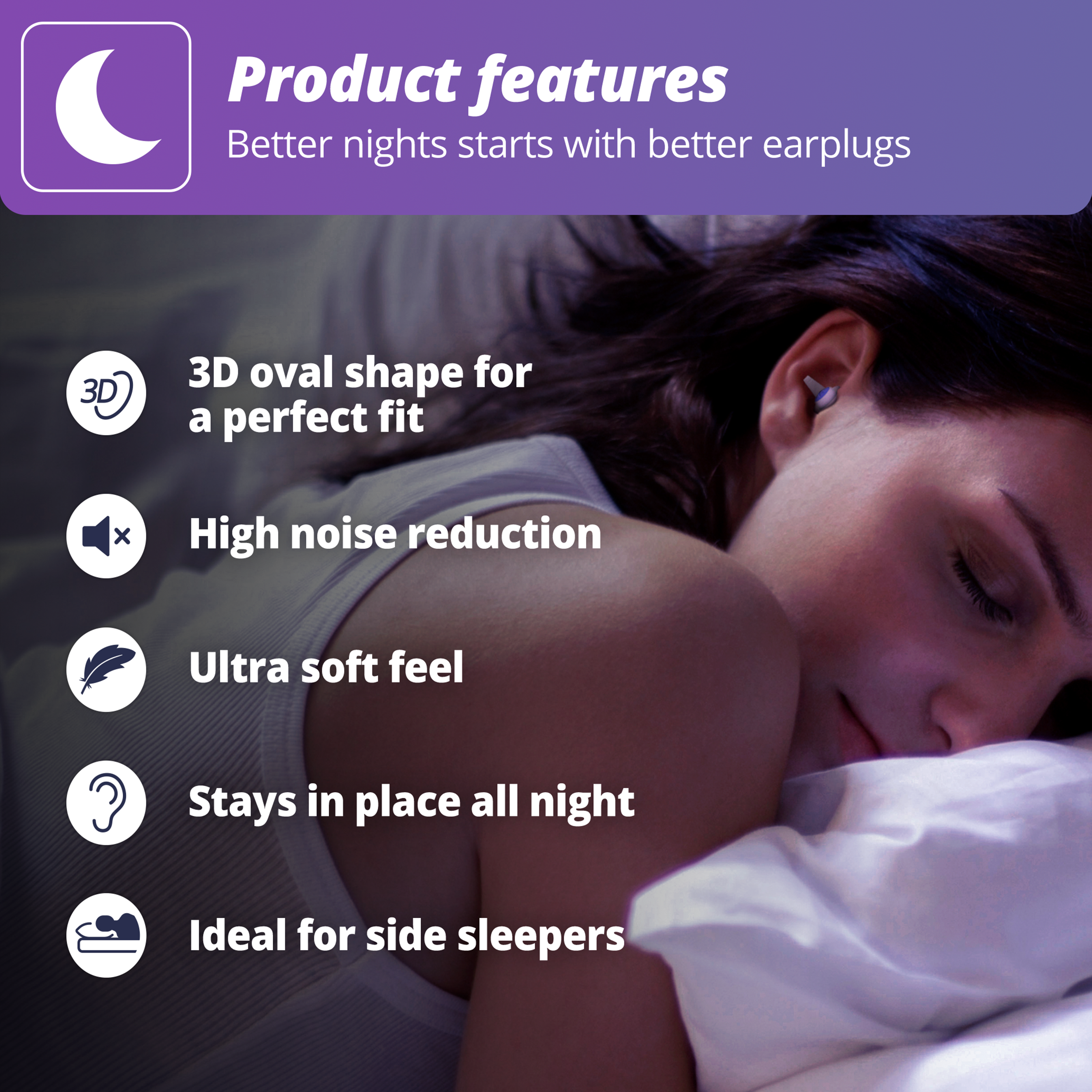 Dies bedeutet, dass die meisten Umgebungsgeräusche gedämpft werden. Damit Sie die ganze Nacht lang gut schlafen können!