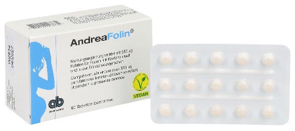 ANDREAFOLIN Tabletten sind ein zugelassenes Arzneimittel von Andreabal AG. Jede Tablette enthält 0.4 mg Folsäure. Das Präparat steht auf der Spezialitätenliste (SL) und kann – vorbehältlich Selbstbehalt und Franchise – durch die Krankenkasse vergütet werden, sofern eine ärztliche Verschreibung vorliegt.