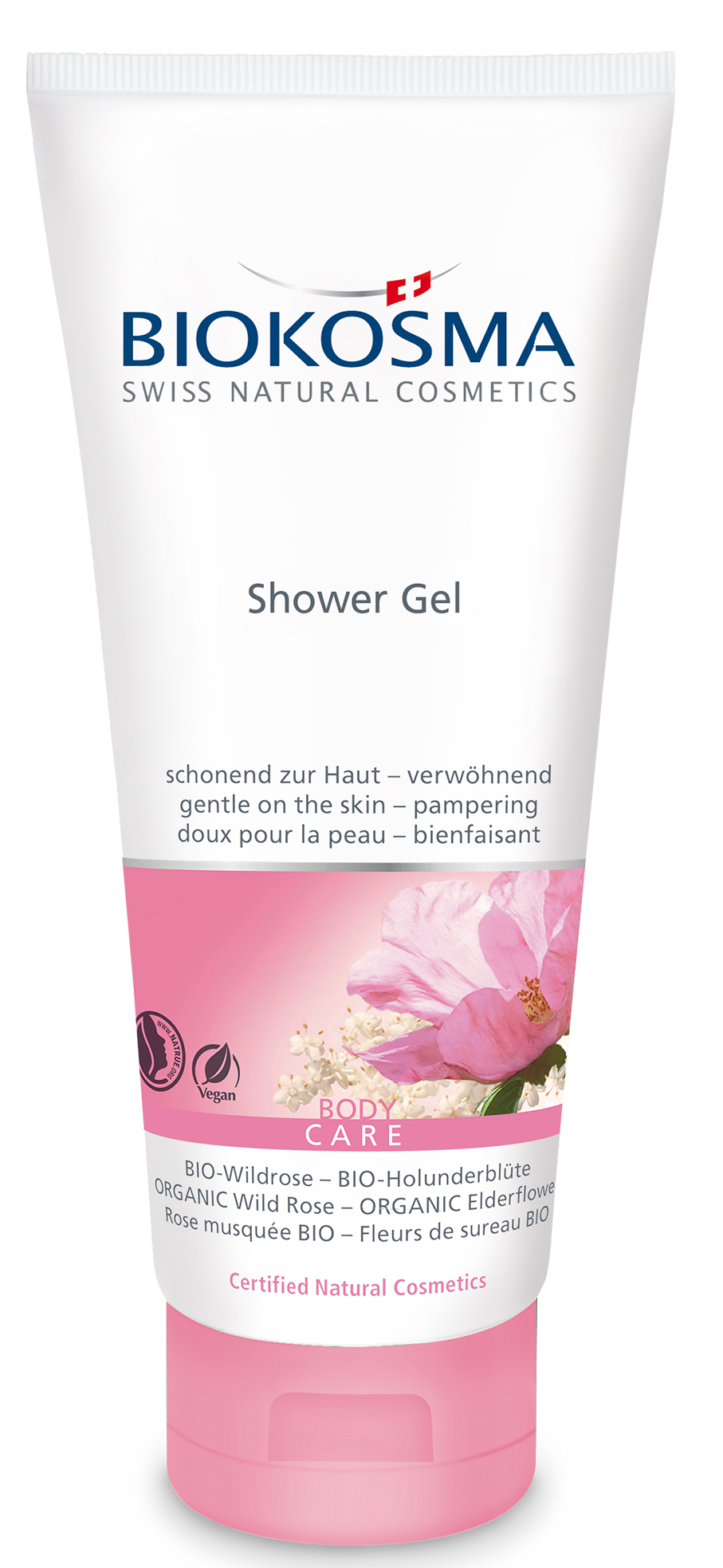 Das verwöhnende Duschgel mit BIO-Wildrosen und BIO-Holunderblütenextrakt aus der Schweiz.