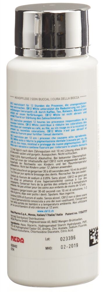 - Anwendung vor dem Schlafengehen: Um den Effekt zu maximieren, verwenden Sie die CB12 White Mundspülung zusätzlich vor dem Schlafengehen.