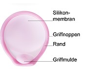 Orientierungshilfe für das Einführen. An diesen Stellen wird das Diaphragma mit leichtem Fingerdruck gefaltet.Rand: