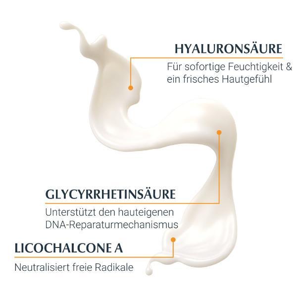 Die Formel ist wasserfest und enthält eine innovative Kombination aus hochwirksamen UVA/UVB-Filtern, die einen zuverlässigen Schutz vor Sonnenbrand bieten. Darüber hinaus enthält sie den einzigartigen biologischen Zellschutz mit Licochalcone A, einem natürlichen Antioxidans, das die Hautzellen im tieferen lebenden Epidermis vor sonnenbedingten Schäden schützt.