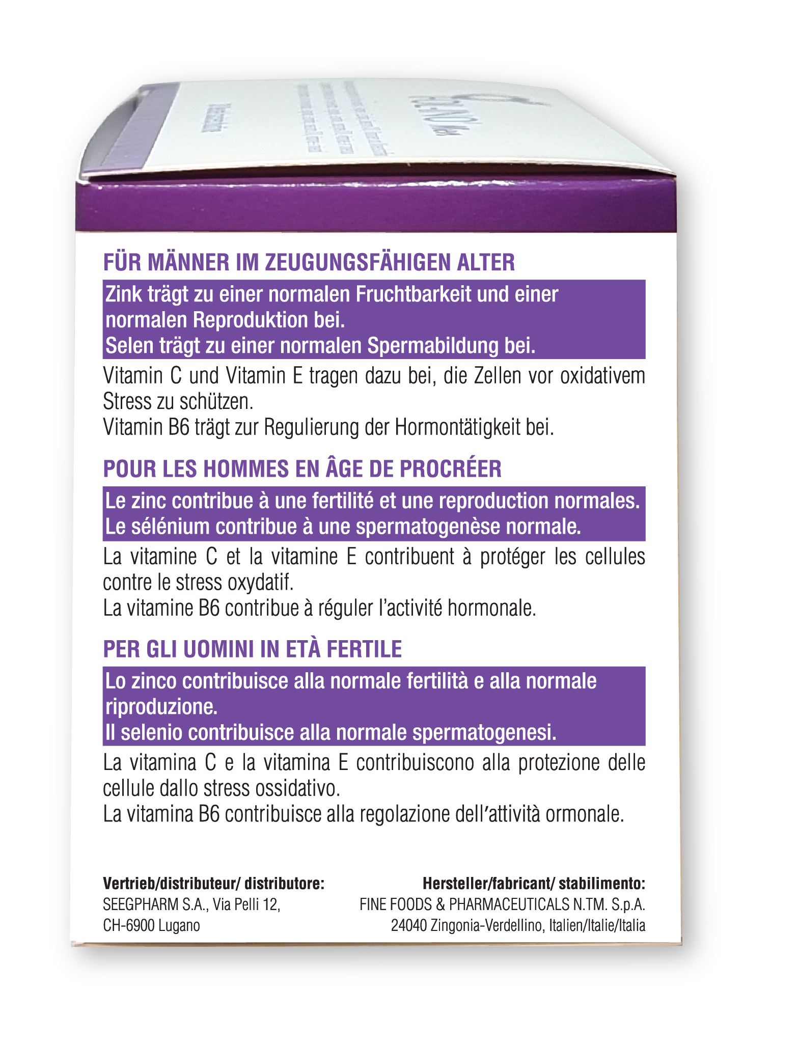 Bei Männern kann die Spermienqualität und die Fertilität in bestimmten Situationen wie Tabakkonsum, Alkoholkonsum, Übergewicht usw. beeinträchtigt sein. Das Nahrungsergänzungsmittel Fol-Ino® Men enthält spezifische Inhaltsstoffe, die helfen, die Spermienqualität und eine normale Fertilität bei Männern zu unterstützen. Es ist für Männer im zeugungsfähigen Alter mit idiopathischer Unfruchtbarkeit bestimmt.