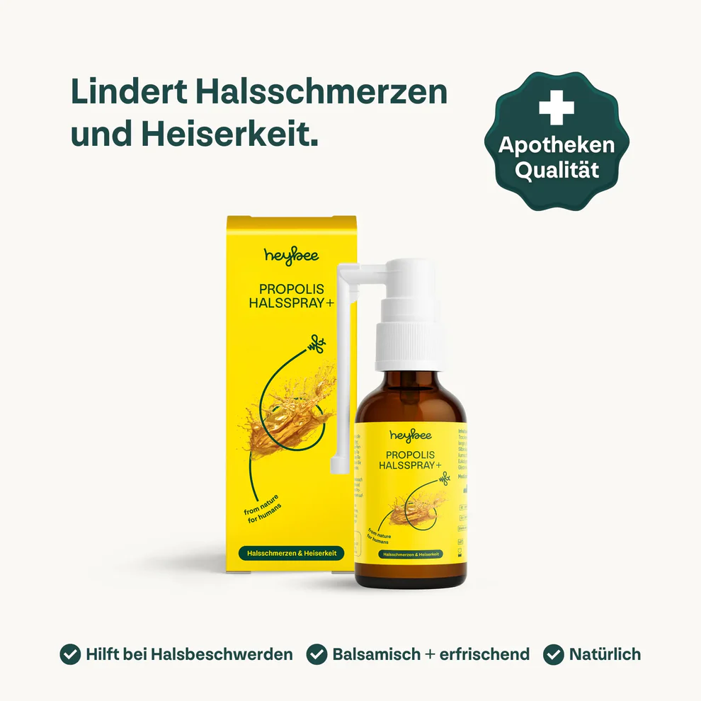 HEYBEE Propolis Halsspray plus 30ml – Schnelle Hilfe bei Halsschmerzen & Heiserkeit