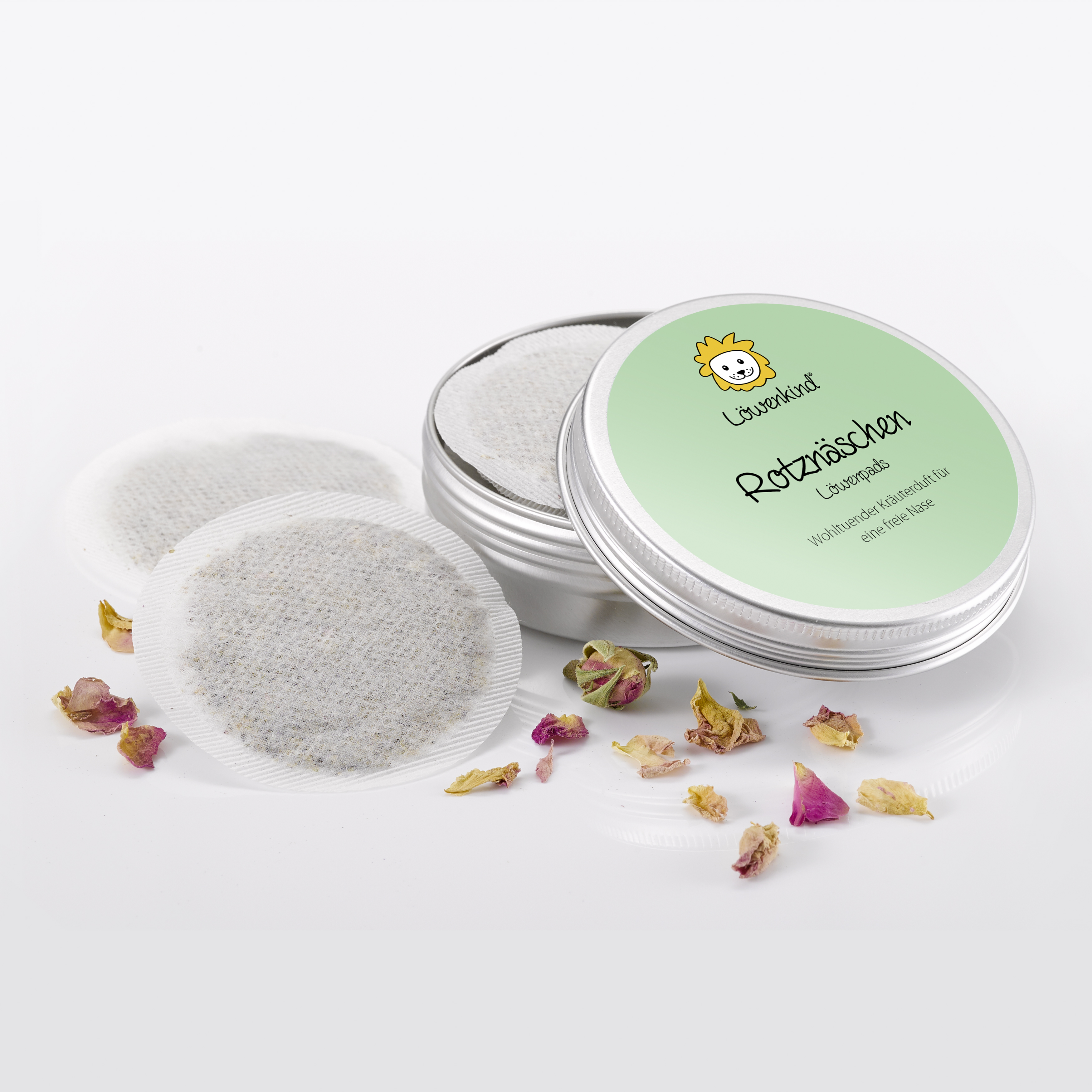 Vertraue auf die natürliche Kraft der Kräuter und sorge mit den Löwenkind Rotznäschen-Pads für ein wohltuendes Umfeld in der Erkältungszeit.