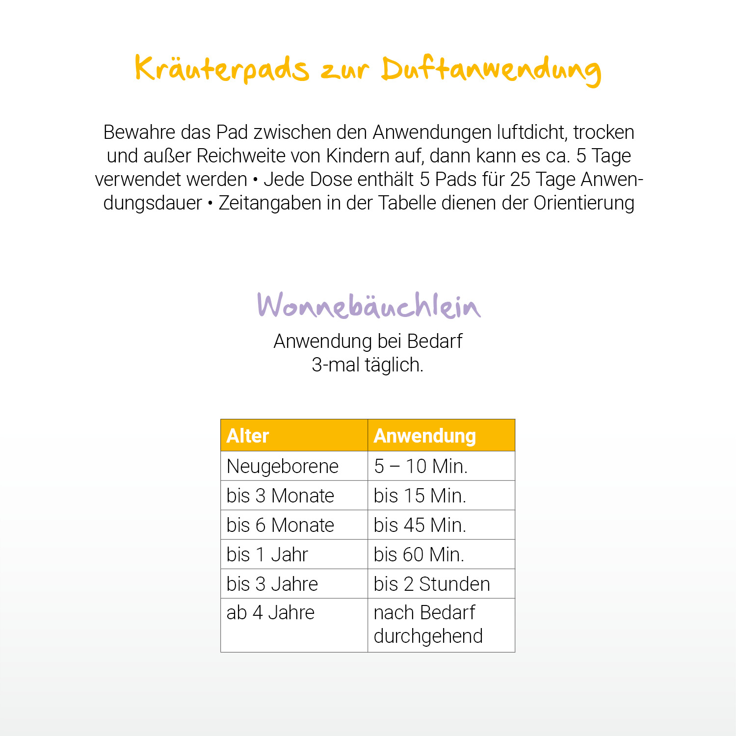 Details zur Anwendungsdauer und weitere Hinweise entnimmst du bitte der beiliegenden Gebrauchsanweisung. Die Löwenkind Wonnebäuchlein-Pads wurden speziell entwickelt, um das Wohlbefinden deines Kindes auf sanfte und natürliche Weise zu fördern.