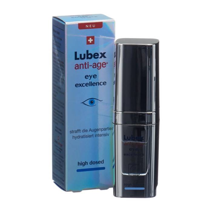 Die Lubex anti-age eye excellence ist eine hochwertige Augenpflege, die speziell für die empfindliche Haut um die Augen entwickelt wurde. Die Pflegecreme enthält wertvolle Inhaltsstoffe wie Hyaluronsäure, Vitamin E und Q10, welche dazu beitragen, dass die Haut um die Augen gestrafft und geglättet wird.