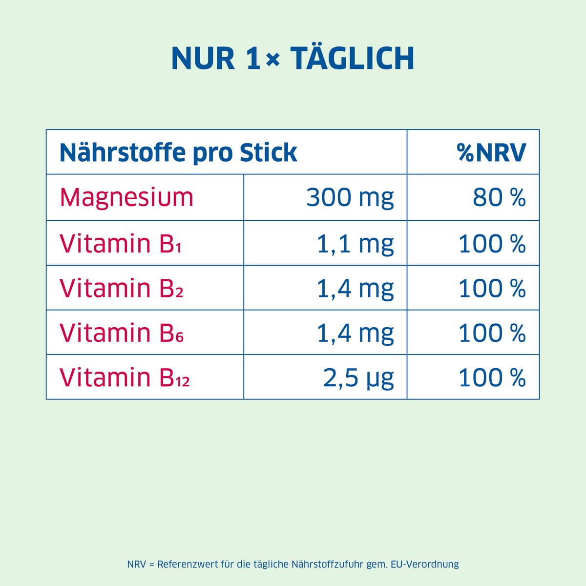 Magnesium ist ein wichtiger Mineralstoff, der zu einer normalen Muskelfunktion und zur Unterstützung der Nerven beiträgt. Magnesium Diasporal® Pro M+N Direct enthält Magnesiumcitrat, das besonders körperfreundlich ist, sowie Magnesiumoxid, um eine optimale Versorgung zu gewährleisten. Darüber hinaus enthält das Produkt die Vitamine B1, B2, B6 und B12, die eine normale Funktion des Nervensystems unterstützen und zur Verringerung von Müdigkeit beitragen können.