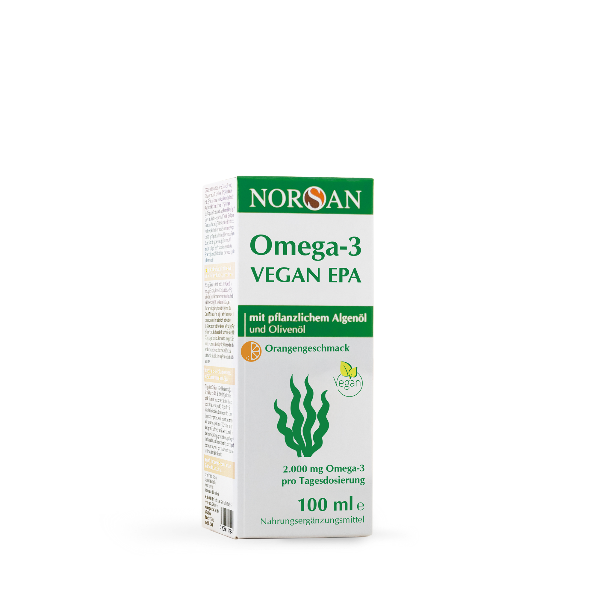 NORSAN Omega-3 VEGAN EPA ist das erste pflanzliche Algenöl mit einem besonders hohen Anteil an EPA (Eicosapentaensäure). Diese essentielle Omega-3-Fettsäure kann vom Körper nicht selbst gebildet werden und ist für zahlreiche Stoffwechselprozesse von grosser Bedeutung. EPA trägt zur Bildung wichtiger körpereigener Substanzen, sogenannter Eicosanoide, bei, die unter anderem entzündungshemmend wirken können.