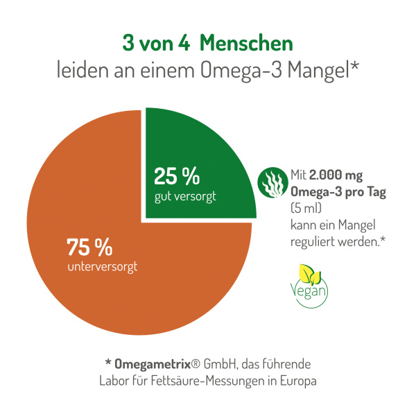 Mit nur einem Teelöffel pro Tag (5 ml) liefert das Öl 2.000 mg Omega-3-Fettsäuren – ideal für alle, die sich vegan ernähren oder auf eine nachhaltige, tierfreie Omega-3-Quelle setzen möchten.