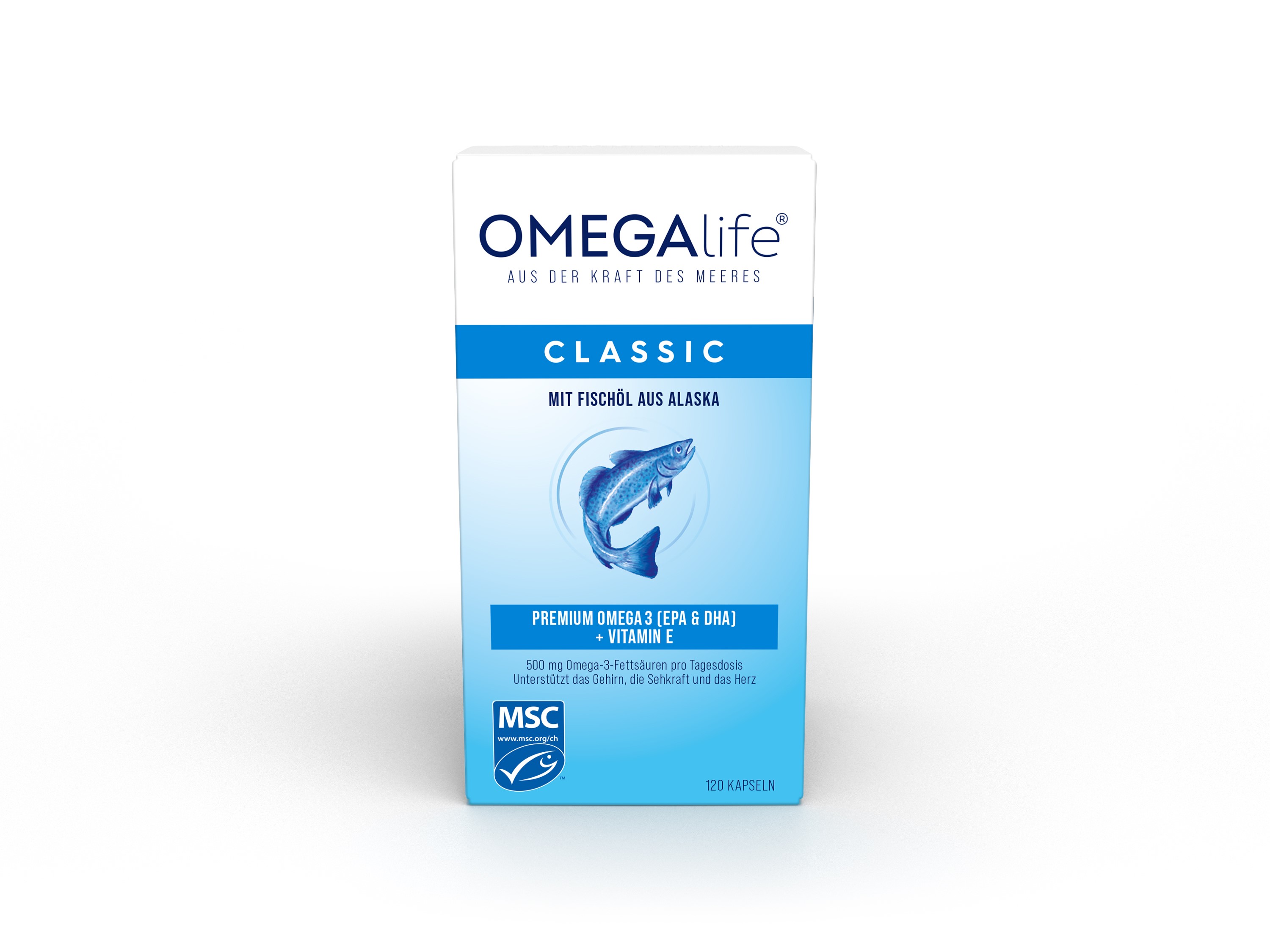 OMEGA-life® Classic 500 mg Kapseln bieten eine wertvolle Quelle an Omega-3-Fettsäuren, insbesondere EPA und DHA, die essenziell für das Wohlbefinden von Herz, Gehirn und Sehkraft sind. Jede Kapsel liefert 500 mg Omega-3-Fettsäuren und 12 mg Vitamin E, um den täglichen Bedarf zu decken. Hergestellt aus hochwertigem Fischöl von Sardellen, Sardinen und Makrelen, bietet OMEGA-life® Classic ein reines, gluten- und laktosefreies Produkt, das sich perfekt in eine ausgewogene Ernährung einfügt.