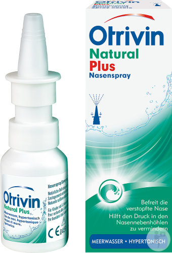 Otrivin Natural Plus enthält natürliches, steriles Meerwasser ohne chemische Zusatzstoffe/Konservierungsstoffe mit einem hypertonen Salzgehalt von 2.2%.