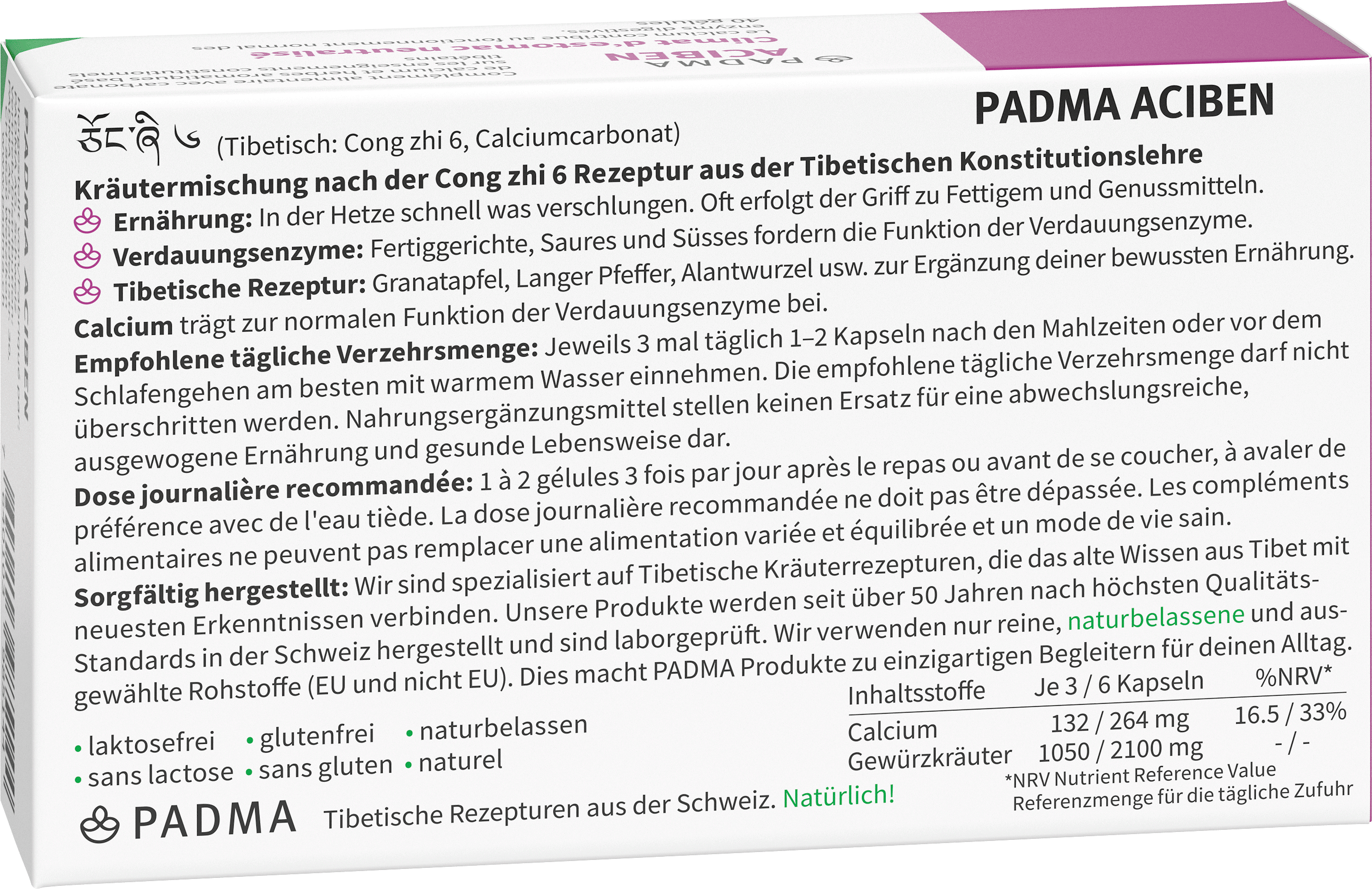 PADMA ACIBEN mit Calciumcarbonat ist der ideale Begleiter, wenn eine ausgewogenen Ernährung situativ nicht möglich ist.