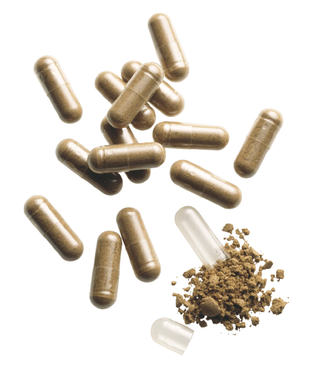 Kräuterkapseln mit Vitamin C zur zellulären Ernährung.