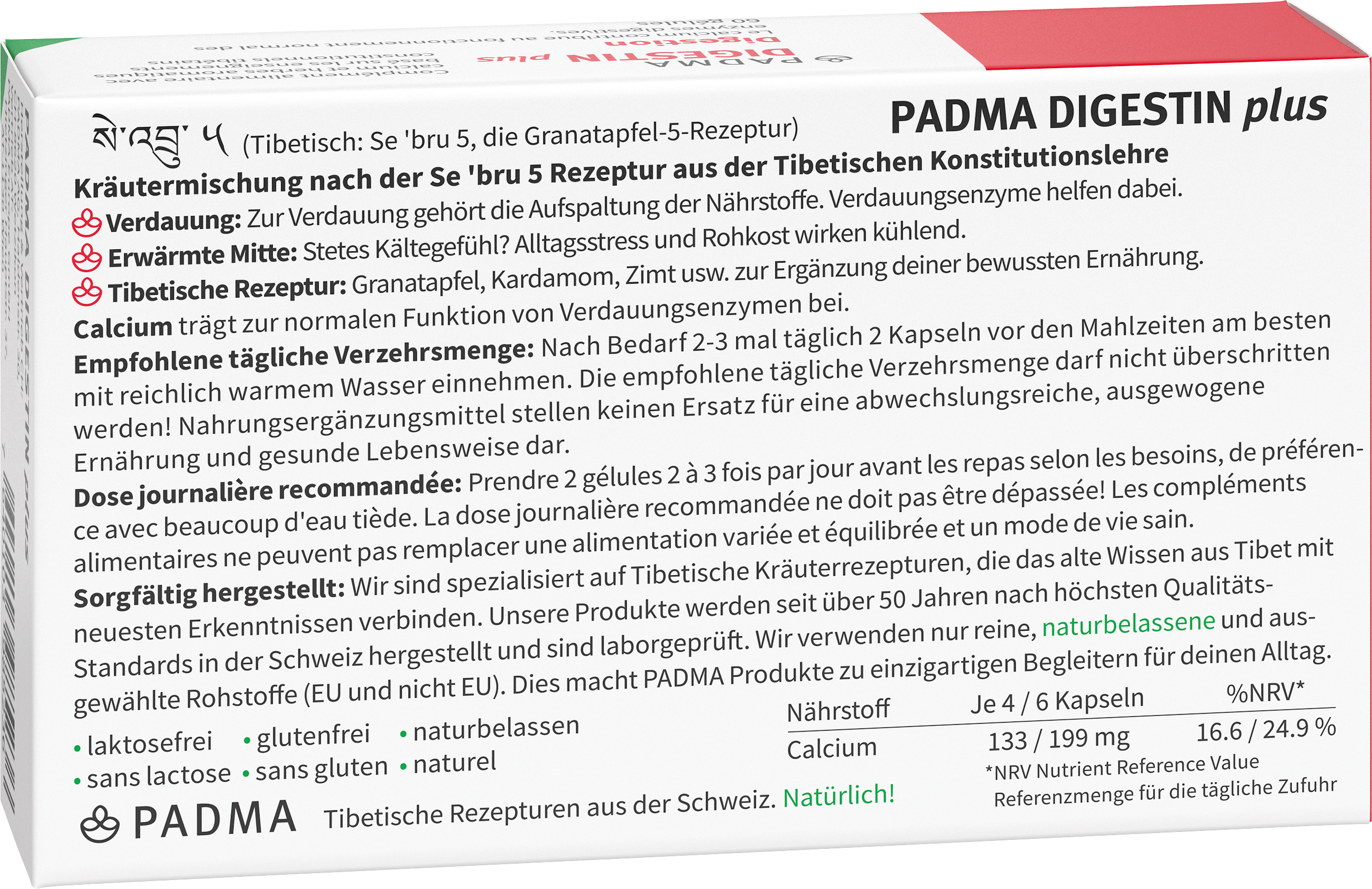 PADMA DIGESTIN plus mit Calcium zur Unterstützung der Verdauungsenzyme.