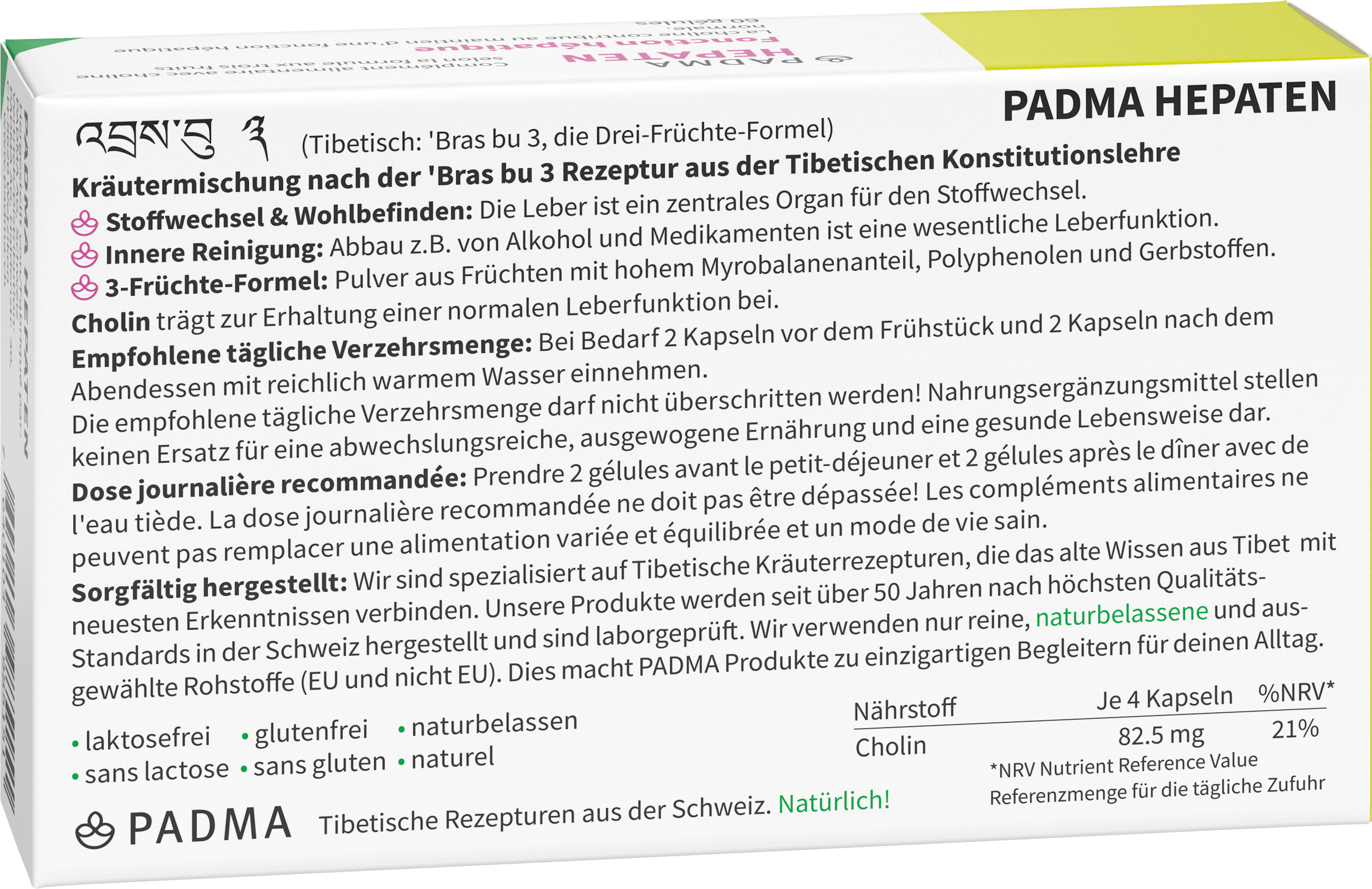 PADMA HEPATEN mit Cholin wird durch die Früchte der rispigen, der emblischen und der belirischen Myrobalane ergänzt.