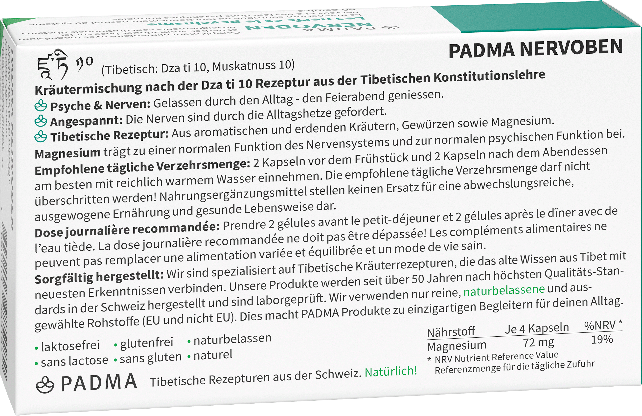 PADMA NERVOBEN ist vegan, laktose– und glutenfrei.
