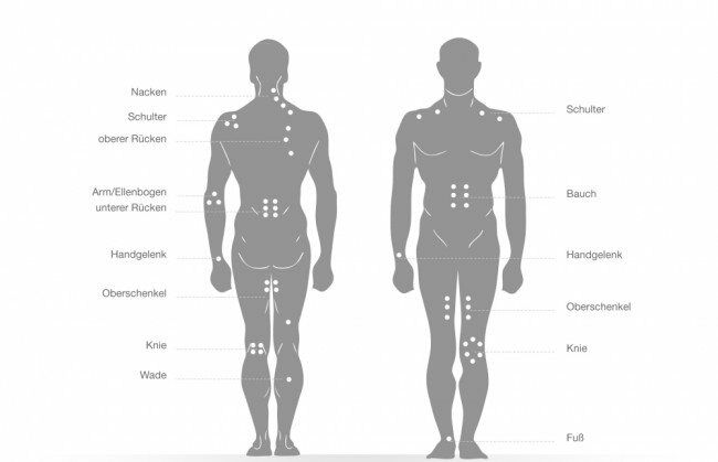 Die Anwendung der PHITEN Titanium Power Tapes ist sehr einfach. Die runden Pflaster können auf verschiedene Körperstellen aufgeklebt werden, um dort ihre Wirkung zu entfalten. Sie eignen sich besonders gut für Gelenke wie Knie oder Ellenbogen sowie für Muskeln im Rücken- oder Schulterbereich.