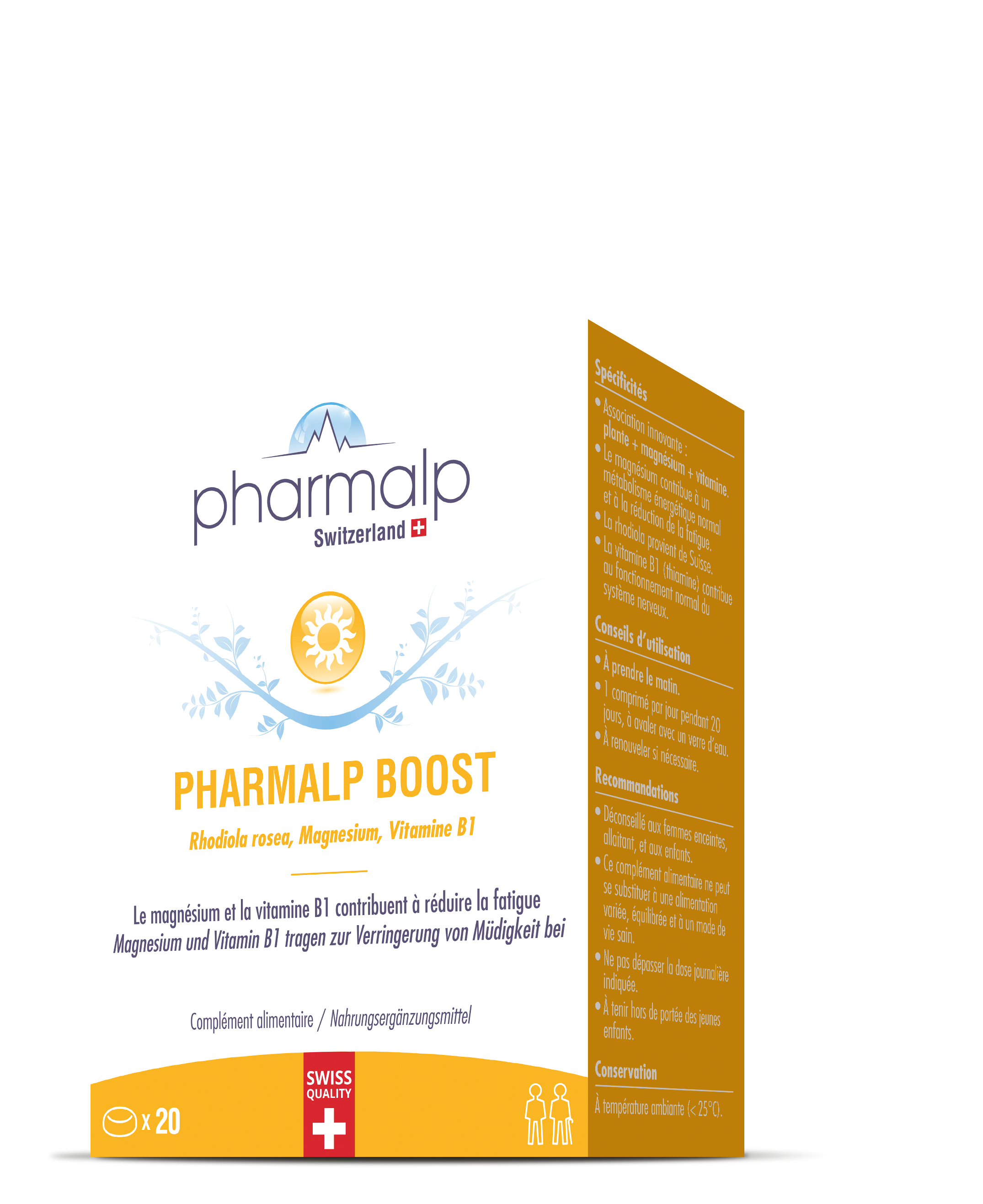 PHARMALP BOOST ist ein Nahrungsergänzungsmittel, das mit einer einzigartigen Kombination aus Rhodiola rosea, Vitamin B1 (Thiamin) und Magnesium unterstützt, den Körper während stressiger Zeiten oder anspruchsvoller Phasen mit zusätzlicher Energie zu versorgen. Dieses Produkt eignet sich besonders für Erwachsene, die ihre Energie steigern und ihre geistige Leistung verbessern möchten, sei es während Prüfungszeiten, bei Zeitverschiebungen (Jetlag) oder in Phasen hoher Belastung.