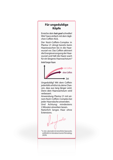 Plantur 21 #langehaare mit seinem Nutri-Coffein-Complex bei jeder Haarwäsche anwenden und mindestens 2 Minuten einwirken lassen.