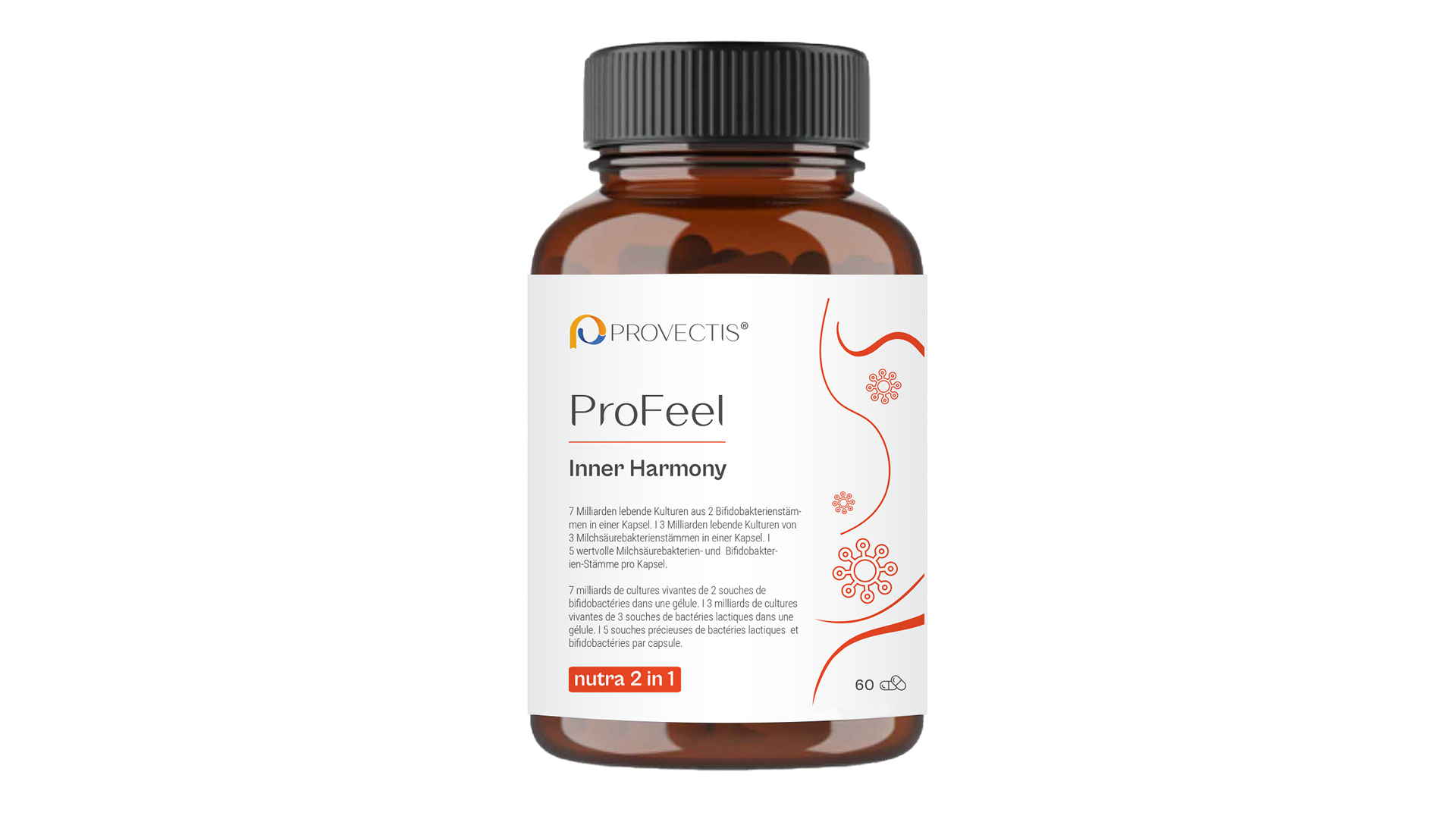Provectis Nutra 2 in 1 ProFeel basiert auf 10 Milliarden Milchsäurebakterien und unterstützt sowohl die Verdauungsbalance als auch die Vitalität. Dieses Nahrungsergänzungsmittel enthält 3 patentierte Milchsäurebakterienstämme und ist vegan-freundlich sowie frei von Laktose, Gentechnik, Soja und Glukose.