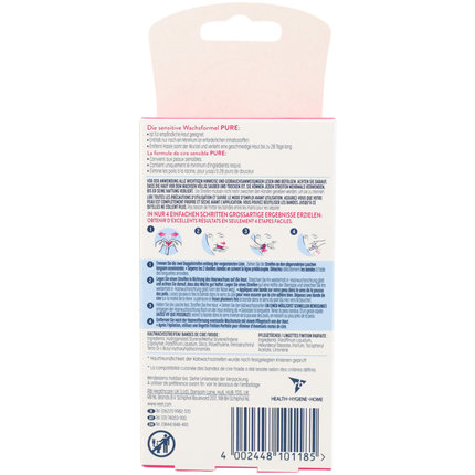 Ausserdem sind sie auch für empfindliche Haut geeignet und enthalten durch die neue Veet PURE Wachsformel nur noch ein Minimum an erforderlichen Inhaltsstoffen*.