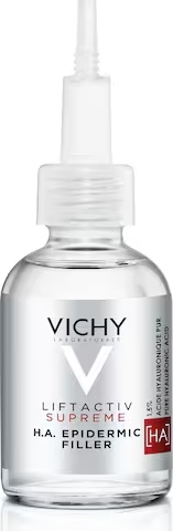 Das Vichy Liftactiv Supreme H.A. Epidermic Filler Serum ist ein hochwirksames Anti-Aging-Serum, das speziell entwickelt wurde, um die Haut im Gesicht und der Augenpartie sichtbar aufzufüllen. Mit einer täglichen Dosis an reinem Hyaluron unterstützt es die Haut dabei, Volumenverlust und Falten zu bekämpfen, die durch den Abbau der hauteigenen Hyaluronsäure entstehen. Das Serum pflegt intensiv und sorgt bei regelmäßiger Anwendung für eine glattere, prallere Haut. Dermatologisch getestet, für empfindliche Haut geeignet.