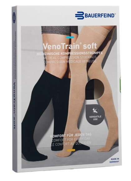 Die VenoTrain soft AD KKL2 Kompressionsstrümpfe in Schwarz vereinen Funktionalität mit angenehmem Tragekomfort. Mit geschlossener Fussspitze und einem 3 cm Noppen-Haftrand bieten sie einen sicheren Sitz und fördern ein gutes Gefühl im Alltag.