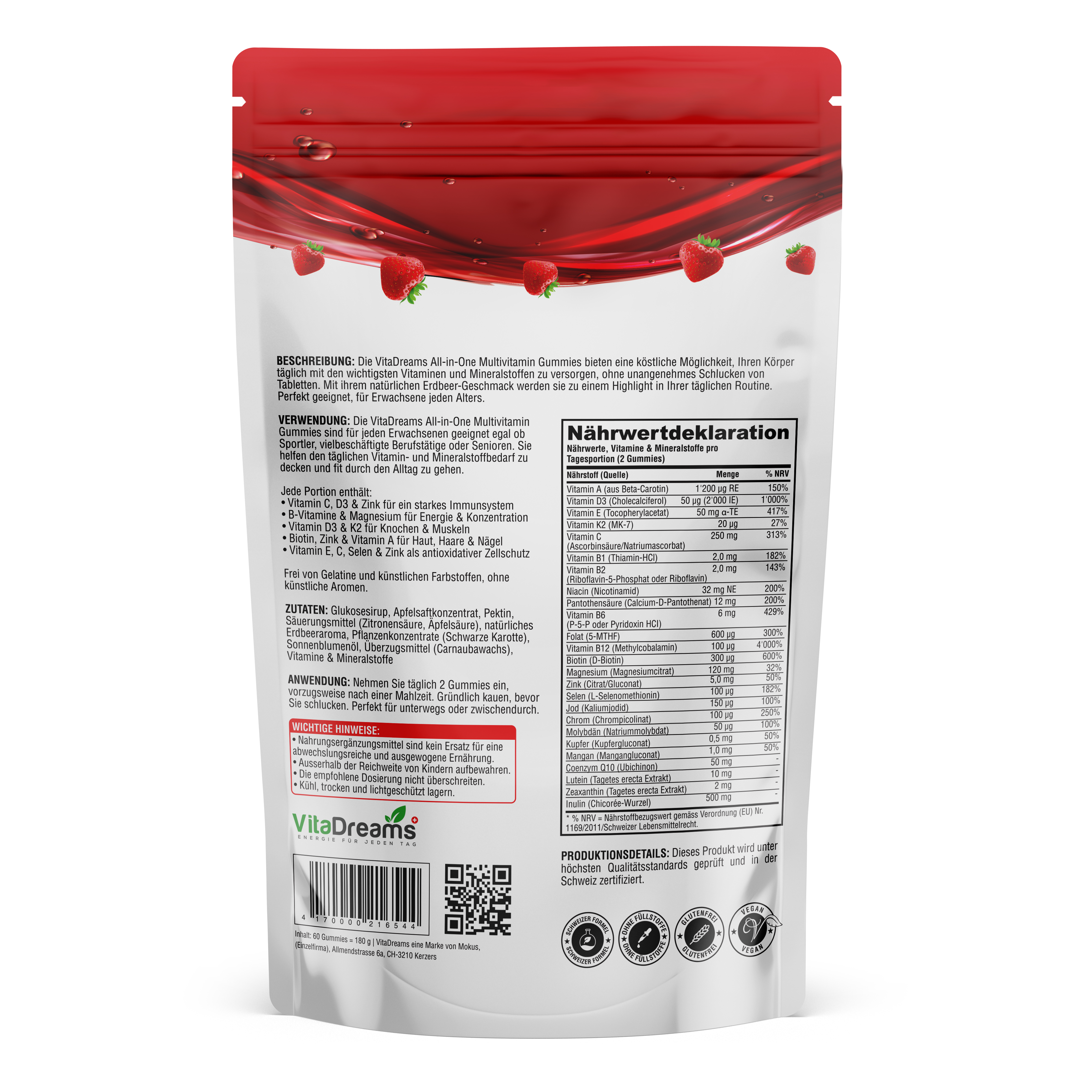 VitaDreams All-in-One Gummies 60 Stück – 23+ Nährstoffe in 2 leckeren Erdbeer-Gummies täglich