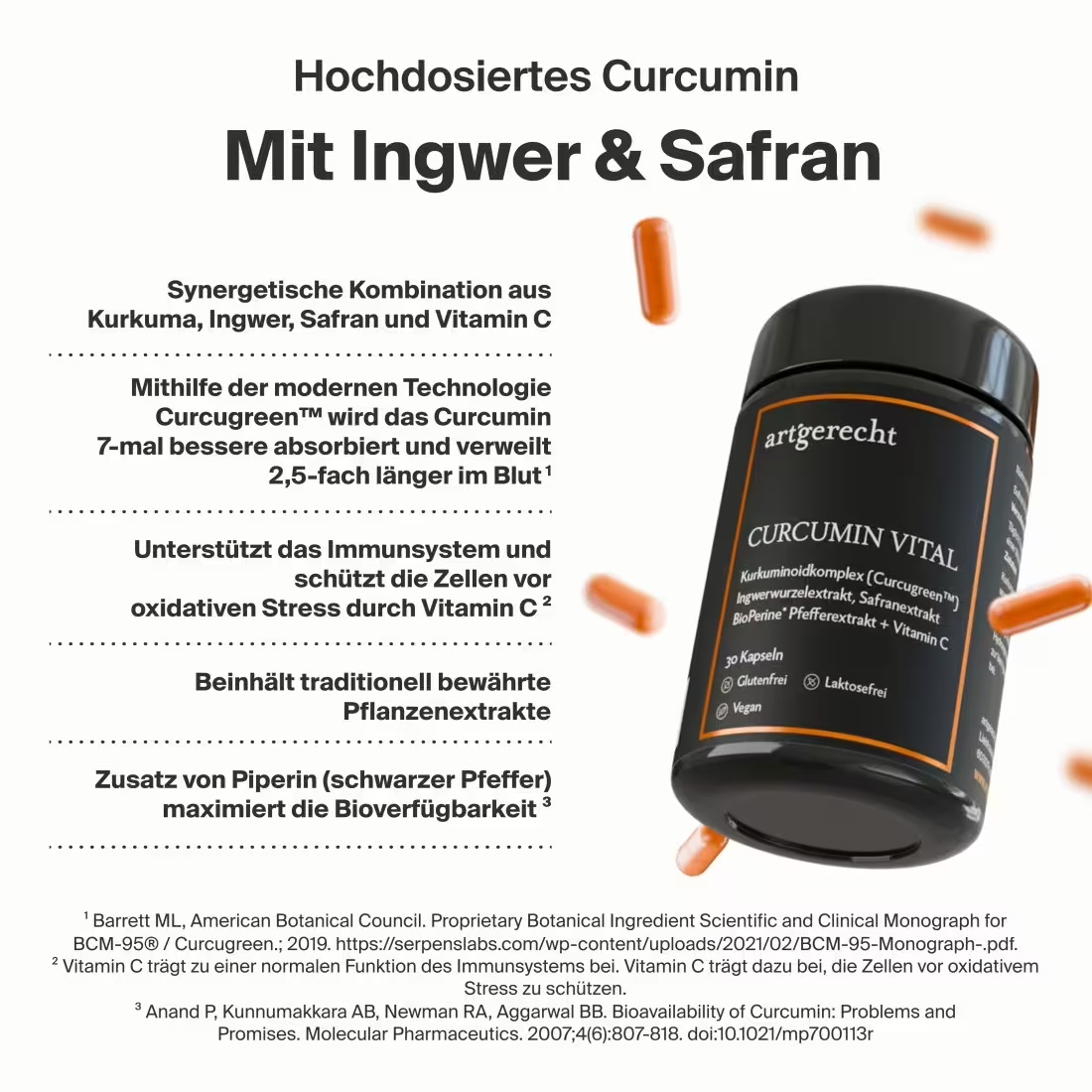 artgerecht Curcumin Vital – Der Curcumin-Safran-Ingwer-Komplex mit Curcugreen® und BioPerin®