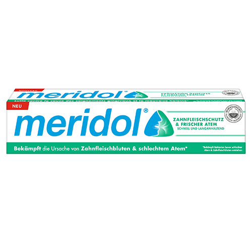Geniessen Sie die sanfte, effektive Pflege für Ihre Zähne, Ihr Zahnfleisch und Ihren Atem mit meridol Zahnfleischschutz & Frischer Atem Zahnpasta.