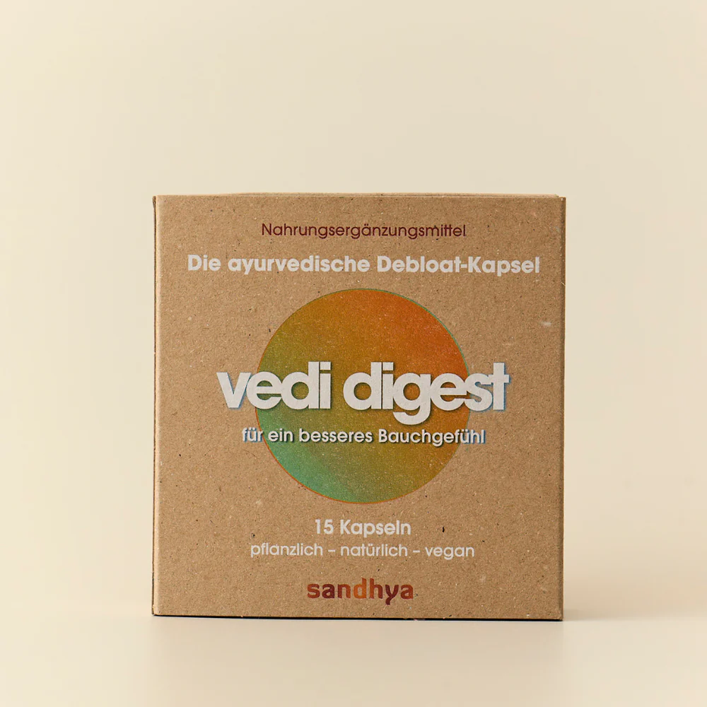 Das sandhya VEDI DIGEST ist ein Nahrungsergänzungsmittel auf ayurvedischer Basis, das speziell für ein angenehmes Wohlgefühl rund um die Mahlzeiten entwickelt wurde. Die sorgfältig abgestimmte Rezeptur aus sieben hochwertigen Pflanzenextrakten orientiert sich an der jahrtausendealten ayurvedischen Überlieferung, in der Bitterstoffe und aromatische Gewürzpflanzen traditionell als Begleiter kulinarischer Rituale geschätzt werden. Das Produkt wird von Expertinnen und Experten in der Schweiz entwickelt, in Deutschland nach HACCP-Standard verkapselt und im Labor auf Pestizidfreiheit geprüft.